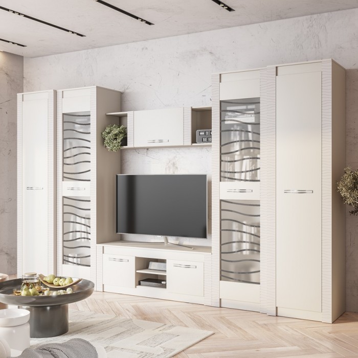 Модульная коллекция «Монако» - это универсальное решение с эргономичным дизайном и функциональностью для современного дома. Фрезеровка с волнообразными узорами на фасадах привлекает внимание. Интерьеры с белыми декорами в 2024 году заменяются на нюдовые тона.