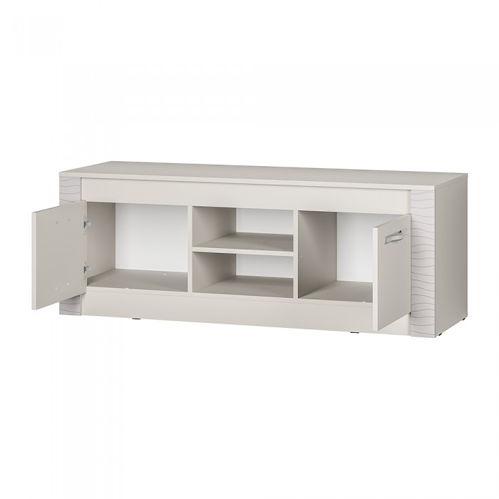 Стильная и лаконичная тумба под ТВ "Монако" станет украшением вашей гостиной. Модель выполнена в едином стиле с другими модулями мебельной коллекции Монако. Она изготовлена из высококачественной ЛДСП цвета Кашемир и Ясень белый и имеет декоративную отделку фасадов из МДФ. Изделие состоит из двух центральных открытых ниш, а также полок, спрятанных за распашными дверцами. На столешнице вы сможете разместить телевизор, а в зонах хранения – необходимые вещи и технику.