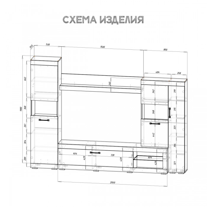 | Ниша под ТВ: | 1500х954х334 мм. |