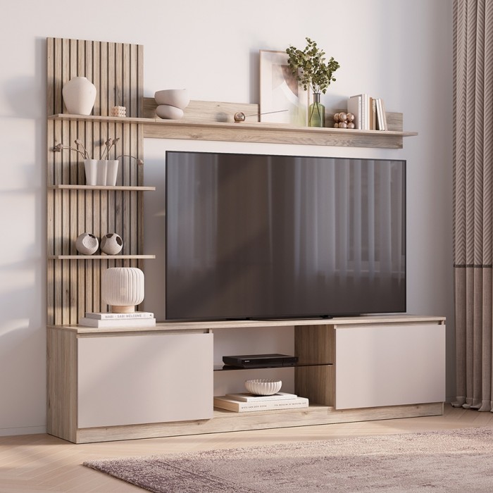 Гостиная "Рио" - это современная интерпретация классической гостиной. Данная модель достаточно компактна, но при этом является функциональной и вместительной. Гостиная "Рио" представляет собой единую конструкцию и вмещает в себя всё необходимое для компактного хранения - вместительная ниша под ТВ, открытые полки для домашней акустики и нужных вещей. Имитация декоративных реек. Износостойкие материалы. Высококачественная фурнитура.