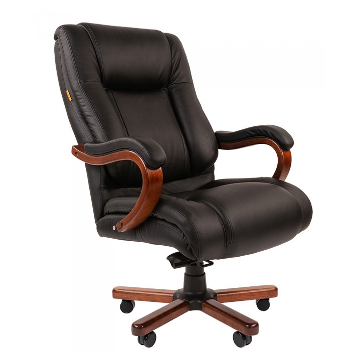 Кресло руководителя, предназначенное для Больших Людей. Выдерживает до 180 кг. Максимальный комфорт и престижное сочетание лакированного дерева и натуральной кожи.