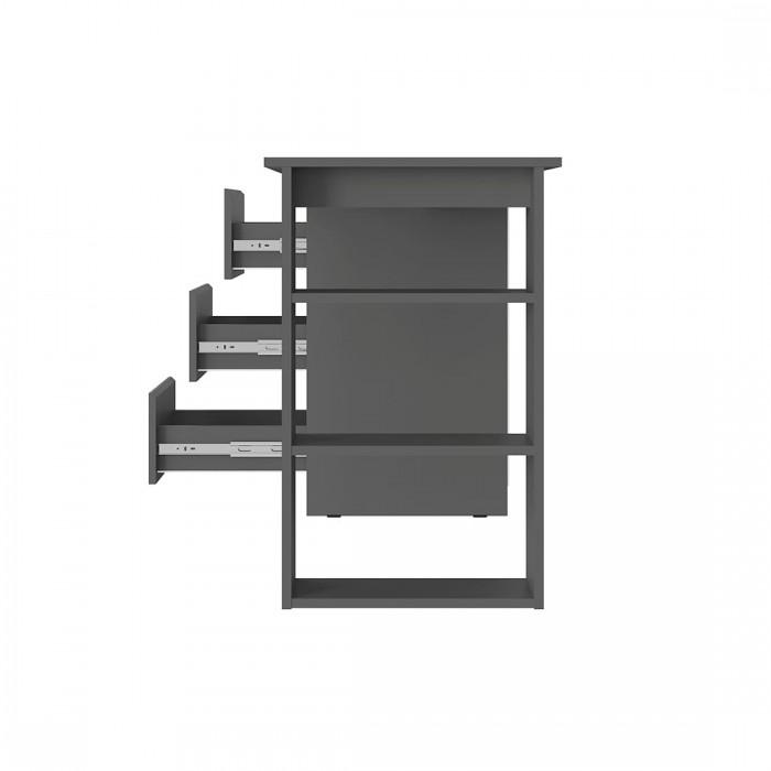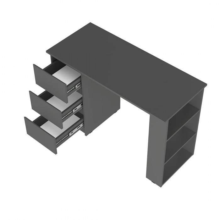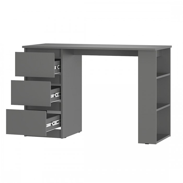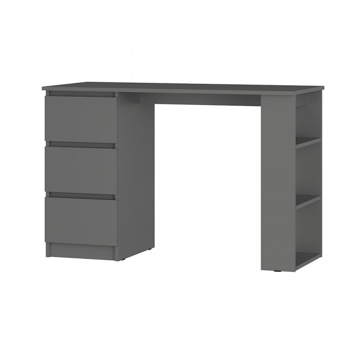 Стол письменный «Симпл» (ПС-07) — компактный, но просторный стол отлично подойдет для работы и учебы. На большой столешнице очень удобно рисовать или делать домашние задания. Здесь найдётся место как для ноутбука, так и для монитора с клавиатурой. Тумба с тремя выдвижными ящиками на шариковых направляющих для школьных принадлежностей и три открытых полки собираются зеркально.