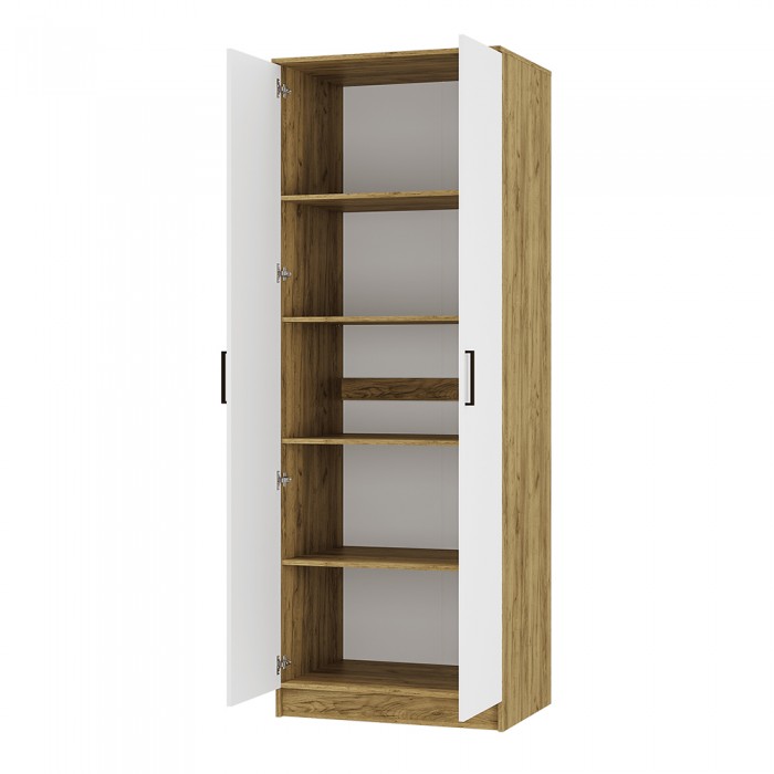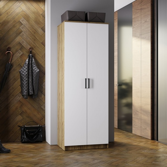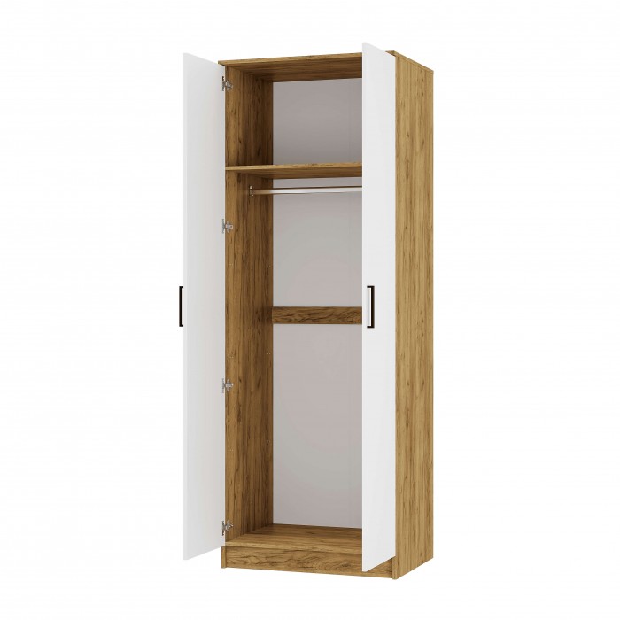 Компактный шкаф для гостиной, личной комнаты или спальни. Двухстворчатый «Евро» - идеальное решение для вашего дома. Надежная штанга – для вертикального хранения и просторная полка для несезонных вещей или обуви. Пространство под штангой подойдет для хранения обуви.