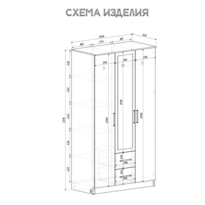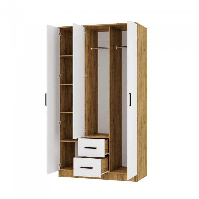Шкаф трехстворчатый «Евро» ШК-06 - ваш стильный и удобный спутник в организации пространства. Он состоит из двух отделений со штангой, отделения с полками и двух выдвижных ящиков на роликовых направляющих.