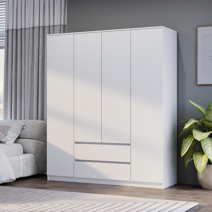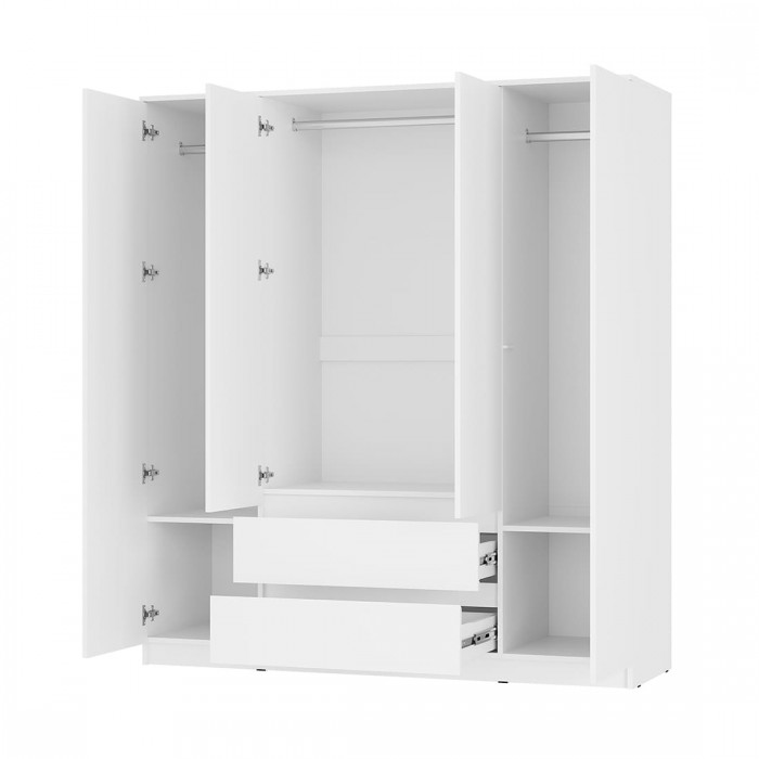Шкаф 4-створчатый «Симпл» (ШК-13) — идеальная модель для семьи и для тех, кто предпочитает хранить гардероб в одном месте. Простой и вместительный четырехстворчатый шкаф оснащен двумя вместительными выдвижными ящиками, в которых удобно хранить обувь и постельное белье. В центральной части шкафа можно разместить сезонный гардероб, а в боковых отделах — верхнюю одежду.