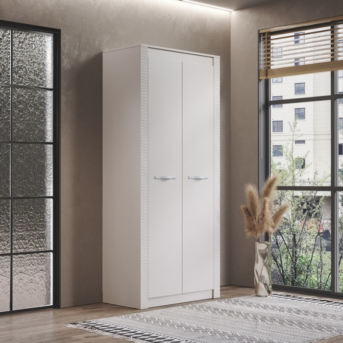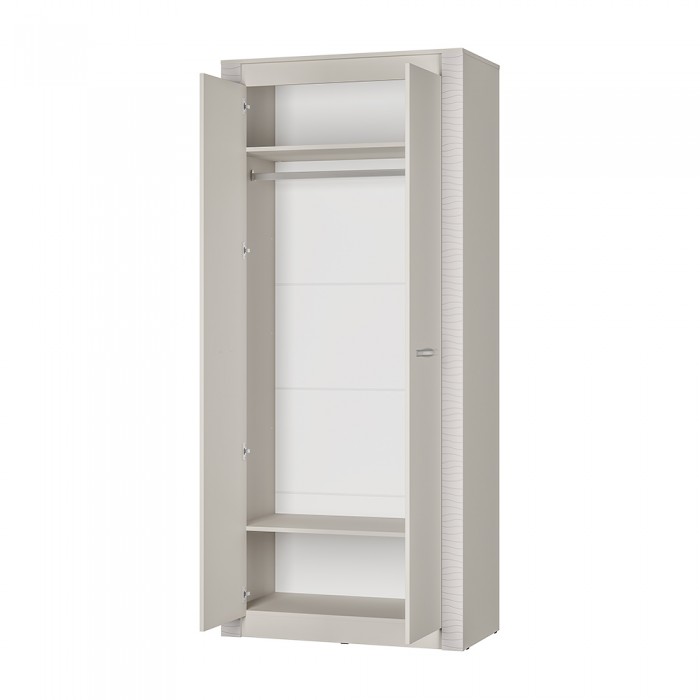 Двухстворчатый шкаф "Монако" относится к одноименной модульной серии. Модель не имеет вычурного декора и лишних деталей, выполнена в сдержанном и лаконичном стиле. Комплектация шкафа представляет собой несколько полок для хранения вещей в сложенном виде, а также отделение с хромированной штангой для одежды на вешалках. Для создания модели используется качественная ЛДСП цвета Кашемир или Ясень белый