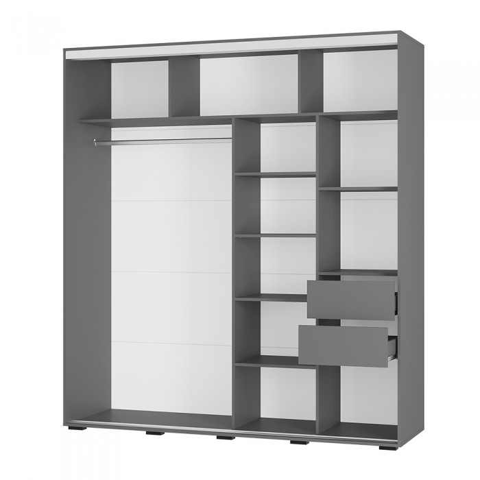 Шкаф-купе "Крафт-6" - это неизменный хит продаж. Вместительная модель идеально подойдет для обладателей большого гардероба. Благородный оттенок "графит" подчеркивает красоту дверей, которые декорированы прозрачным стеклом и белой лакобелью. Зеркало - тип обработки фацет.