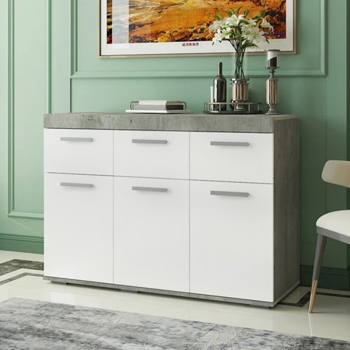 Светлые матовые фасады, стильный корпус в цвете "бетон", лаконичные хромированные ручки – все это про модель комода "Инстайл" из одноимённой мебельной коллекции. Размеры комода позволяют разместить в нем большое количество вещей. В верхних выдвижных ящиках можно хранить украшения или аксессуары.
