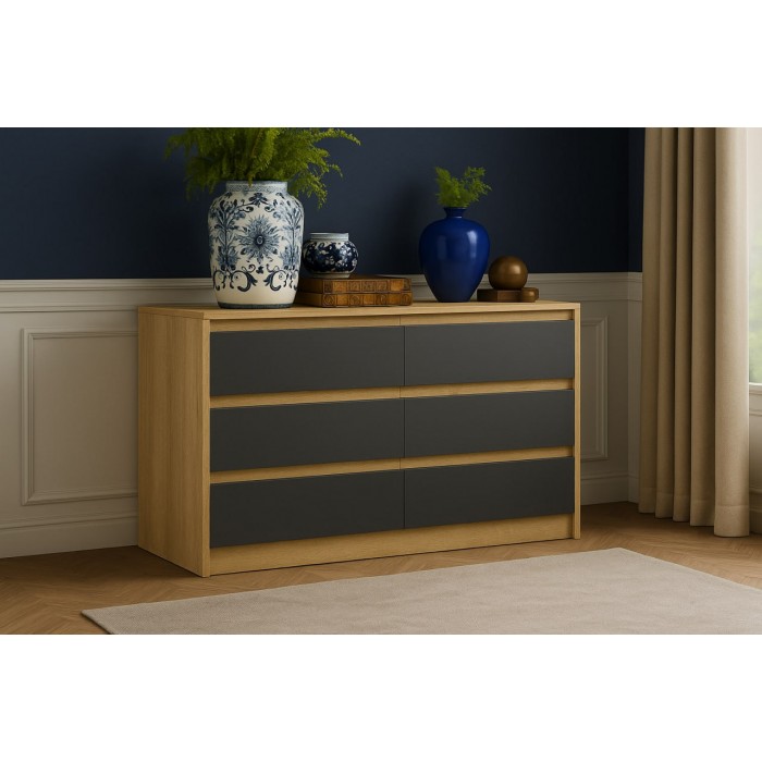 Комод Мальм 6 ящиков дуб крафт золотой/графит (Ориноко) в Луганске, ЛНР