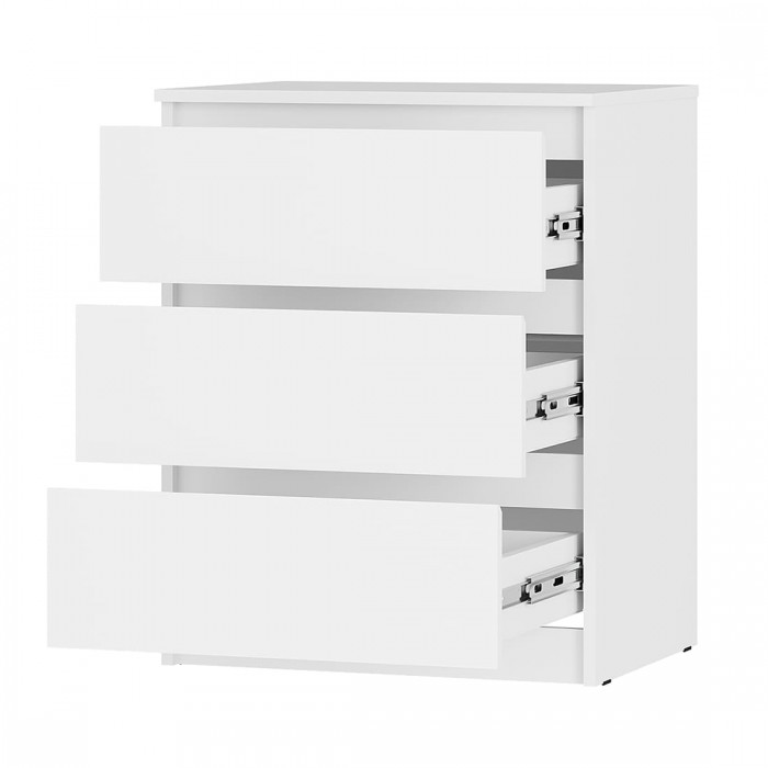 Комод «Симпл» (КМ-01) — компактный и вместительный комод с тремя выдвижными ящиками, которые открываются бесшумно за счет шариковых направляющих. Идеальная модель для хранения постельного белья и легкой одежды, а также различных мелочей. На столешнице можно разместить торшер, книги и косметику.
