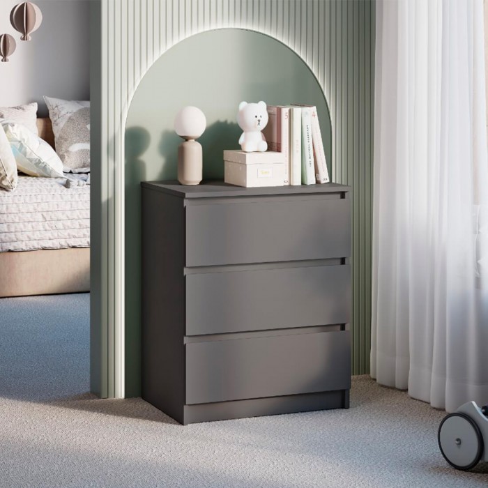 Комод «Симпл» (КМ-01) — компактный и вместительный комод с тремя выдвижными ящиками, которые открываются бесшумно за счет шариковых направляющих. Идеальная модель для хранения постельного белья и легкой одежды, а также различных мелочей. На столешнице можно разместить торшер, книги и косметику.