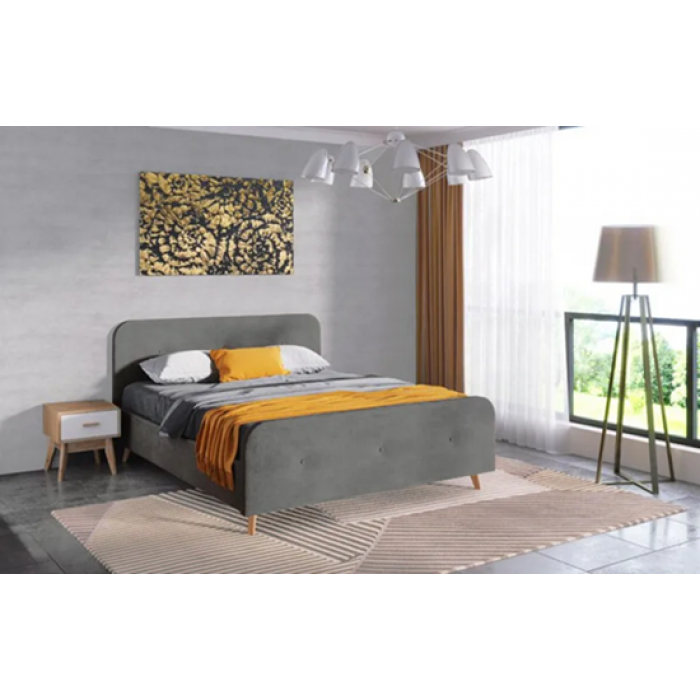 Изголовье имеет закругленный силуэт, обтянут велюровой тканью с пуговицами, что обеспечивает дополнительную мягкость и уют. Высокие стильные ножки из массива березы создадут ощущение легкости и воздушности.