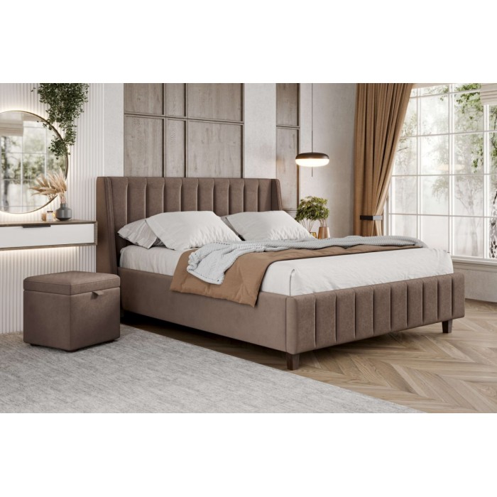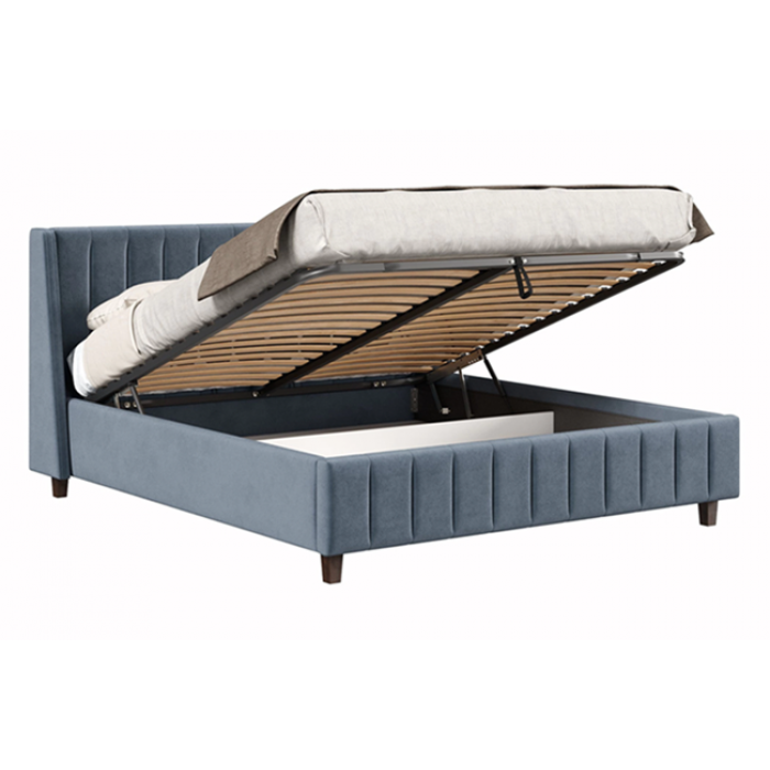 Удобный подъемный механизм на газовых лифтах дает возможность мягко и плавно поднимать металлическую кроватную решетку с матрасом практически без прикладывания каких-либо усилий. Объемный короб достаточно вместителен, чтобы в него можно было поместить не только постельное белье, но и другие вещи. Каркас изделия выполнен из древесины.