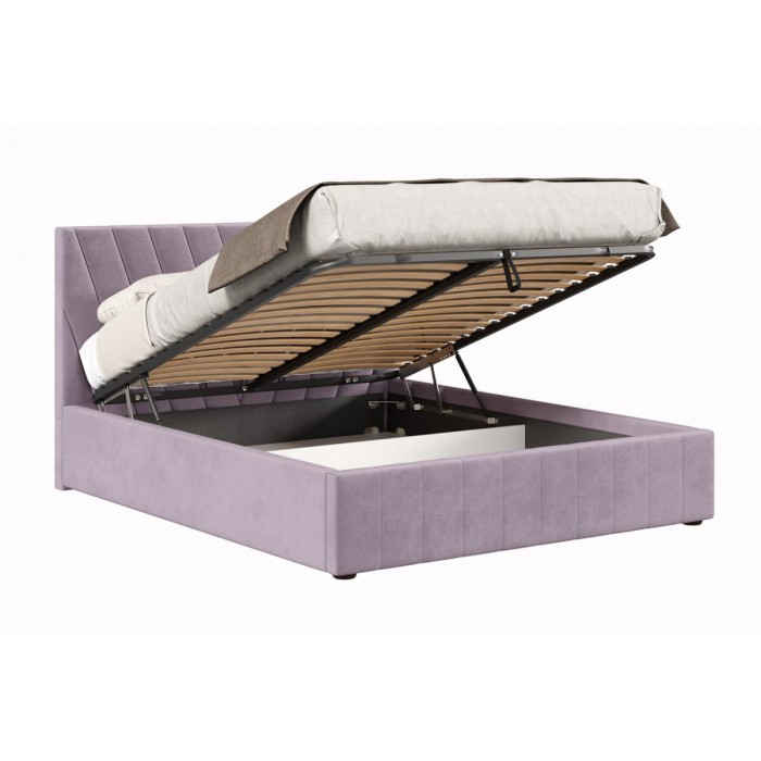 Удобный подъемный механизм на газовых лифтах дает возможность мягко и плавно поднимать металлическую кроватную решетку с матрасом практически без прикладывания каких-либо усилий. Объемный короб достаточно вместителен, чтобы в него можно было поместить не только постельное белье, но и другие вещи. Каркас изделия выполнен из древесины.