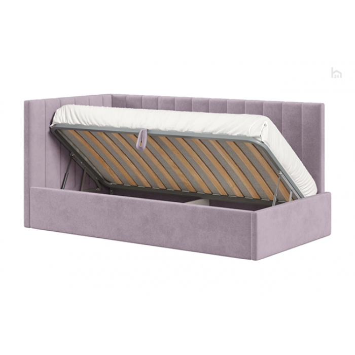 Удобный подъемный механизм на газовых лифтах дает возможность мягко и плавно поднимать металлическую кроватную решетку с матрасом практически без прикладывания каких-либо усилий. Объемный короб достаточно вместителен, чтобы в него можно было поместить не только постельное белье, но и другие вещи. Каркас изделия выполнен из древесины.