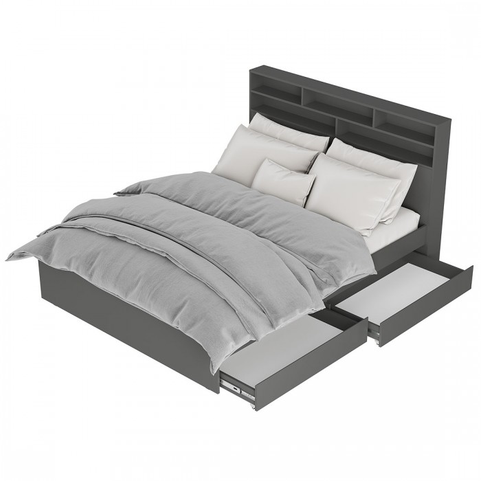 Кровать оснащена выкатными ящиками, в которых легко размещается постельное белье, текстиль и другие вещи, которым не нашлось места в шкафу.