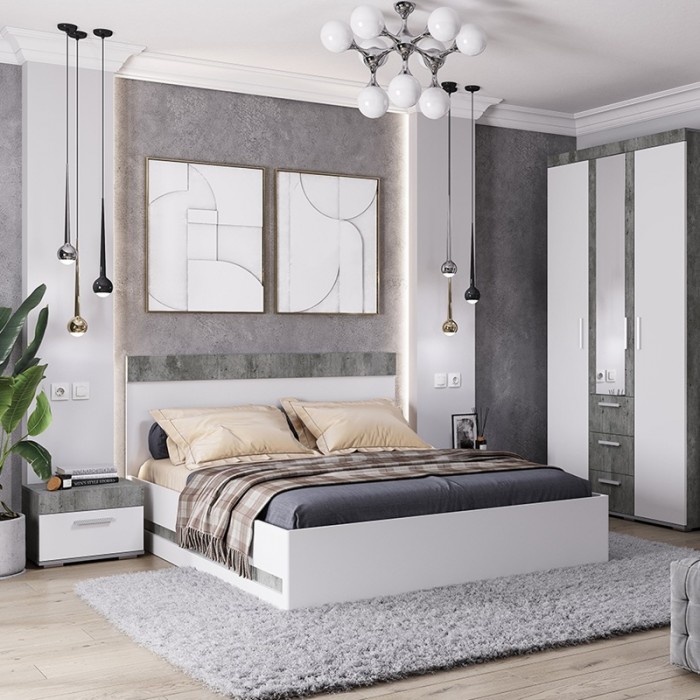 Отличный выбор для современной спальни – это кровать "Инстайл". Использование белого цвета в каркасе придает модели легкости и позволяет расположиться в любом интерьере. Часть изголовья выполнена в цвете бетон. Данный цвет является отличительной чертой модульной коллекции мебели "Инстайл".
