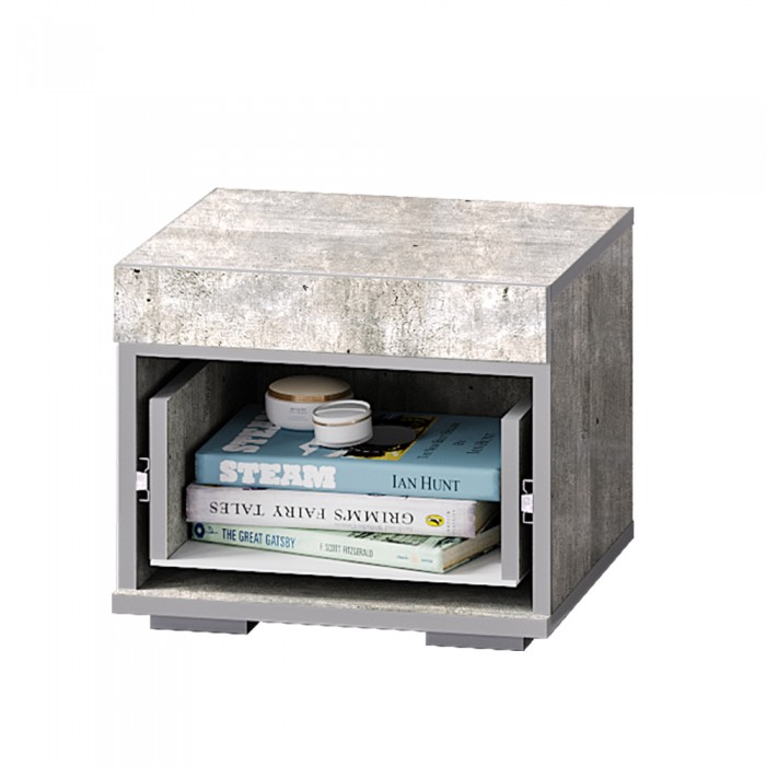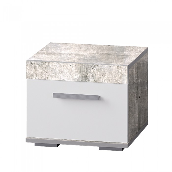 Отличный выбор для спальни – прикроватная тумба "Инстайл". Белый матовый фасад придает модели свежести и легкости. А сочетание с цветом "бетон" делает тумбу очень современной. В выдвижном ящике, дополненным удлиненной ручкой геометрической формы, можно хранить все необходимые вещи.
