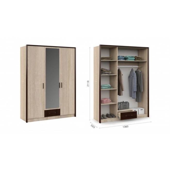 Шкаф 3-х створчатый (Ш1360хГ583хВ2118 мм.)