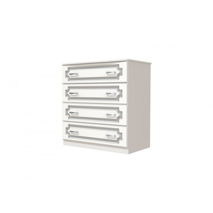 Белоснежность фасадов, элегантная отделка рисунком, классический распашной шкаф с зеркалом - так выглядит идеальная спальня. Нежный оттенок белого жемчуга делает комнату более просторной и светлой - универсальный вариант для любого стиля.